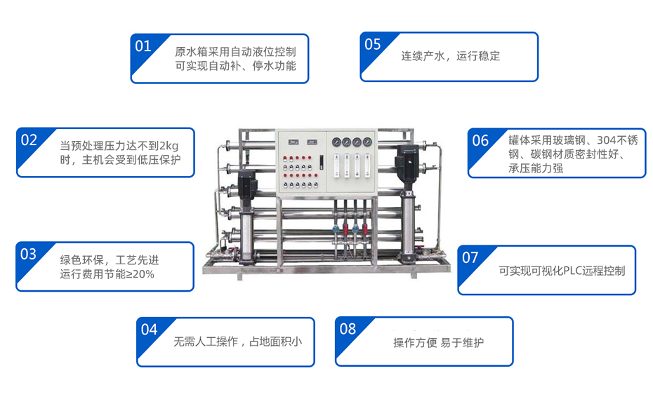 1. 雙級反滲透設備采用全自動控制方式,可減少人為誤操作對設備帶的影響