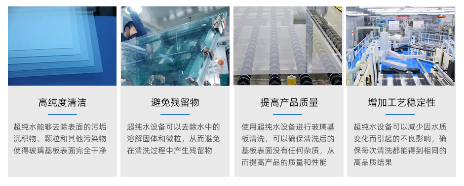 玻璃基板需要具有高純度的表面和內部結構,以確保最終產品的質量和性能。任何微小的雜質都可能對玻璃基板的透明度、光學性能和機械強度產生負面影響。超純水設備可以提供高純度的水源,去除水中的離子、微生物、有機物和顆粒物等雜質,以滿足對玻璃基板純凈度的嚴格要求