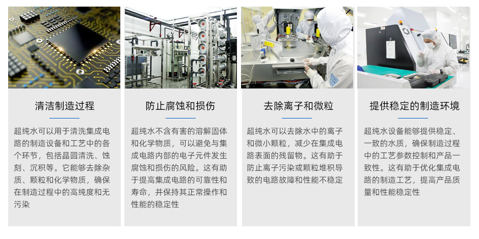 集成電路使用超純水設備可以用于清洗集成電路的制造設備和工藝中的各個環節,包括晶圓清洗、蝕刻、沉積等。它能夠去除雜質、顆粒和化學物質,確保在制造過程中的高純度和無污染