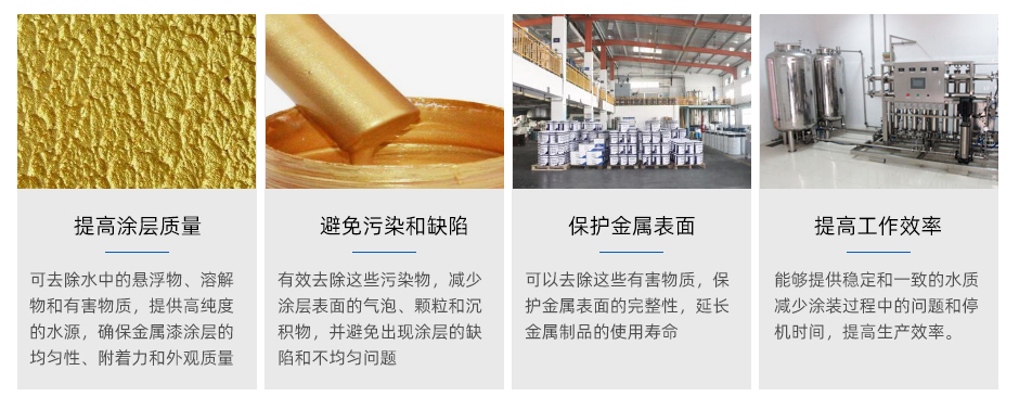 金屬漆涂裝需要使用大量的水,如果使用未經處理的水源,其中可能含有各種雜質、離子和微生物等,會影響金屬漆產品的色澤、粘度、附著力和耐久性等方面的品質。使用純水設備可以去除這些雜質和污染物,從而獲得高純度的水源,確保產品的穩定性和質量。