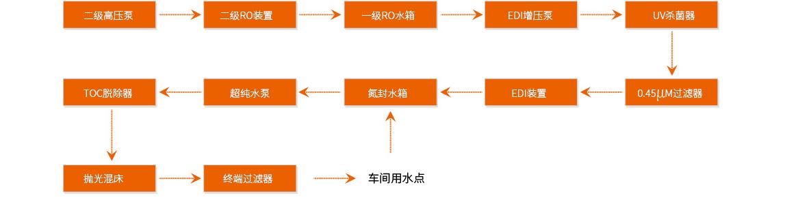 EDI的作用就是通過除去電解質(包括弱電解質)的過程,將水的電阻率從0.05~1.0MΩ·cm提高到5~16MΩ·cm
