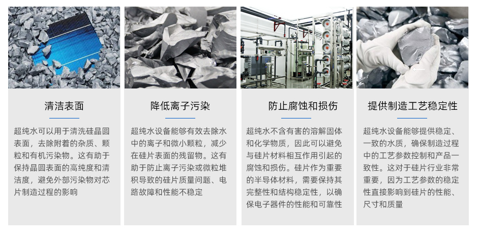 超純水可以用于清洗硅晶圓表面,去除附著的雜質、顆粒和有機污染物。這有助于保持晶圓表面的高純度和清潔度,避免外部污染物對芯片制造過程的影響